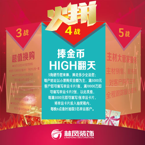 林凤装饰家装主材今冬开惠啦!11月15日、16日仅此两天,林凤装饰家装主材火拼专场劲爆开战:进店即送礼品、签单达额满减、超值换购豪礼、还能参加幸运捧金币活动!品牌厨卫用品、座便器、热水器等多重大礼等你来拿!惊爆钜惠热力直升,让这个冬天温暖起来!